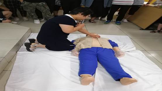 最后,让同学们实操培训,上台的几位同学都存在各种各样的问题,但在尹护士长的指导下都已经掌握了CPR技能,能够独立实施救助了。