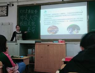 高老师首先通过中美校园物质文化:围墙文化、建筑文化、绿地文化、环境卫生文化的对比,让在座的师生对中美文化差异有一个基本的理解;再通过中美课堂教学模式、教材的使用、课后活动的安排等方面的对比,介绍了中美教学模式的差异。比如在课堂教学方面,美国大学教学硬件设施十分完善,能够利用科技网络平台开展互动教学科研活动,这为教师的教和学生的学提供一个良好的环境,而且学校有系统的大学生实践能力培训制度,有严格的知识产权保护制度与意识培养;中国大学则以教师以讲授为主,一言堂,学生听、记,缺乏随意的提问。通过这样的对比介绍,使同学们对于中美大学学习的差异进行了一定的了解,最后在同学们的热烈掌声中,此次讲座圆满结束。