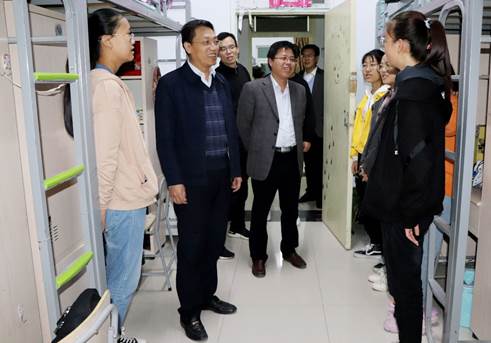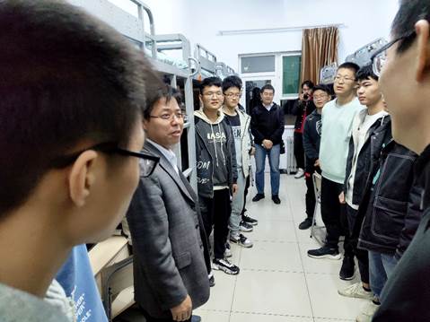 每走进一间宿舍,老师们和蔼的笑容使同学们倍感温暖、不再拘谨。潘晋孝副校长代表学校对新生表示热烈的欢迎,表明高考已成过往,大学是人生的重要阶段,珍惜当下,好好学习,为自己的人生做好规划,打好基础以获得更好的发展。鼓励新生以全新的面貌迎接自由广博、多姿多彩的大学校园生活,以此为基点扬帆起航、再铸辉煌。领导们与新生亲切交谈,详细了解同学们的住宿环境、基本配置以及学习、生活相关情况等,听取大家的意见和建议。在和谐温馨的氛围中,老师们不忘叮嘱大家平时注意防盗以及安全用电等问题。