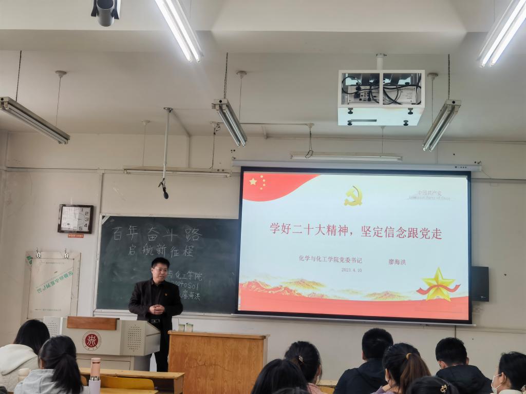 党委书记廖海洪老师于2023年4月10日在10306Z召开“百年奋斗路,启航新征程”的主题班会,为我们解读二十大的内在精神以及作为学生的我们应该具有的精神,现场多位老师莅临。