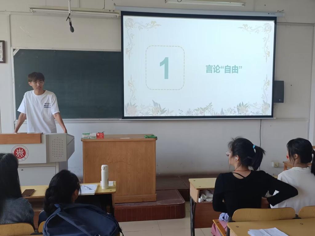 在经过了两周的线上作品征集活动后,共有两个小组进入了线下的分享会。第一组组员分享的是自主撰写并拍摄的作品“言论‘自由’”。在疫情到来时,全人类全面抗疫,但是与此同时,也产生了各种不同的观点与声音。倡导大家无论是在疫情期间或者是在日常生活中都要友善发言,不参与任何形式的网络暴力,成为了这部作品产生的灵感源泉。第二组是通过配音方式完成的作品“心灵的灯”,在分享会中,其组员介绍到如今越来越多的同学们在步入了大学生活中因为不能很快适应新生活,在面对学业的压力下,往往会表现的非常焦虑,于是以此为灵感创作了该作品。