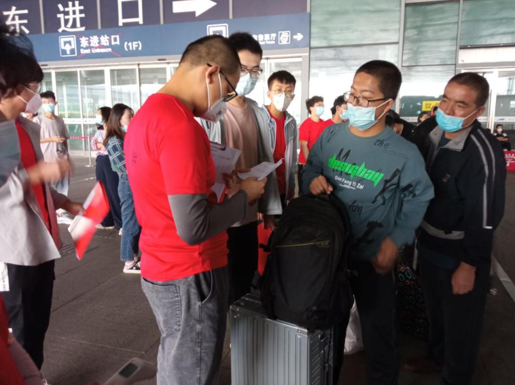 9月10日和11日,在太原南站设立的接待点上,志愿者们分为接待组、引导组、搬运组、登记组和机动组等5个小组,为新生提供信息登记、体温测量、咨询引导、行李搬运等全方位的热情周到的服务。志愿者们用一张张热情的笑脸,一句句亲切的问候,一项项贴心的服务,欢迎着来自祖国各地的莘莘学子,温暖着学弟学妹们紧张而又兴奋的心。虽然天气很热,来回引导工作很累,但是志愿者们始终坚守在自己的岗位上,分工明确,认真负责,交接顺畅,保证了迎新工作高效有序地进行,树立了国产大奶