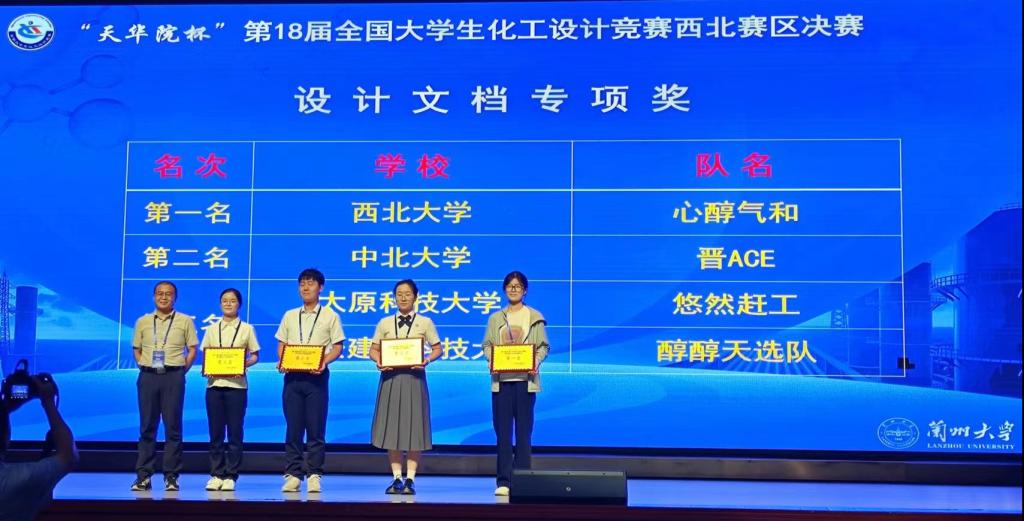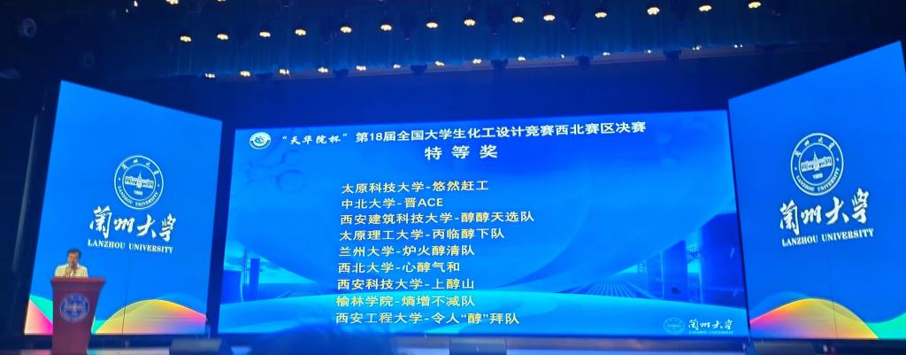 “晋ACE”团队凭借过硬的化工设计实力、出色的现场答辩、精彩的团队协作及现场应变能力,在西北赛区总决赛中以优异成绩获得西北赛区特等奖,同时获得优秀“工程图纸”与优秀“设计文档”专项奖,并将代表西北赛区到大连理工大学参加全国总决赛。