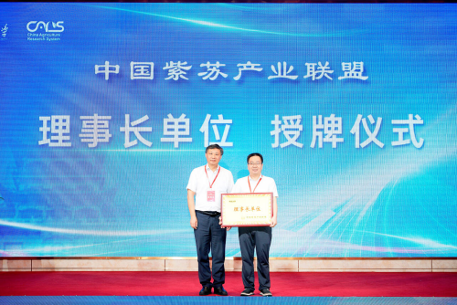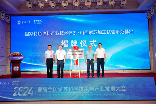 以紫苏为媒,凝聚智慧,共商紫苏产业发展大计。7月28日-7月30日,我校与国家特色油料产业技术体系共同主办的首届全国紫苏科学技术与产业发展大会在太原市阳曲县举行。来自全国从事紫苏产业的高校、科研院所、代表性企业等40余家单位参加大会,涵盖了紫苏全产业链的各个环节。我校在会上发起成立“中国紫苏产业联盟”并当选该联盟理事长单位,大会还举行了国家特色油料产业技术体系·山西紫苏加工试验示范基地(阳曲)揭牌仪式及《中国紫苏》专著发布仪式。