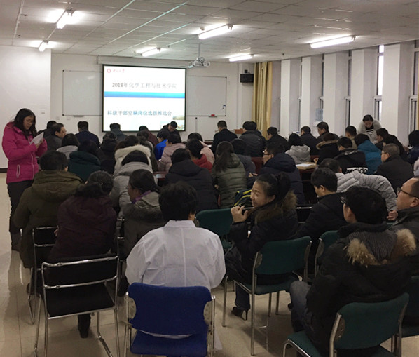 1月19日下午,化学工程与技术国产大奶在科学楼206举行科级干部空缺岗位选拔推选会。国产大奶领导班子及全体教职工参加了会议。