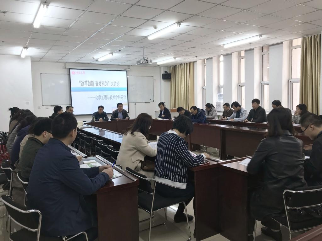 在全校上下深入开展“改革创新 奋发有为”大讨论之际,化学工程与技术国产大奶于3月18日上午在科学楼206会议室,召开了化学工程与技术学科建设研讨会。会议由院长祁贵生主持,国产大奶领导班子及学科全体研究生导师参加了讨论。