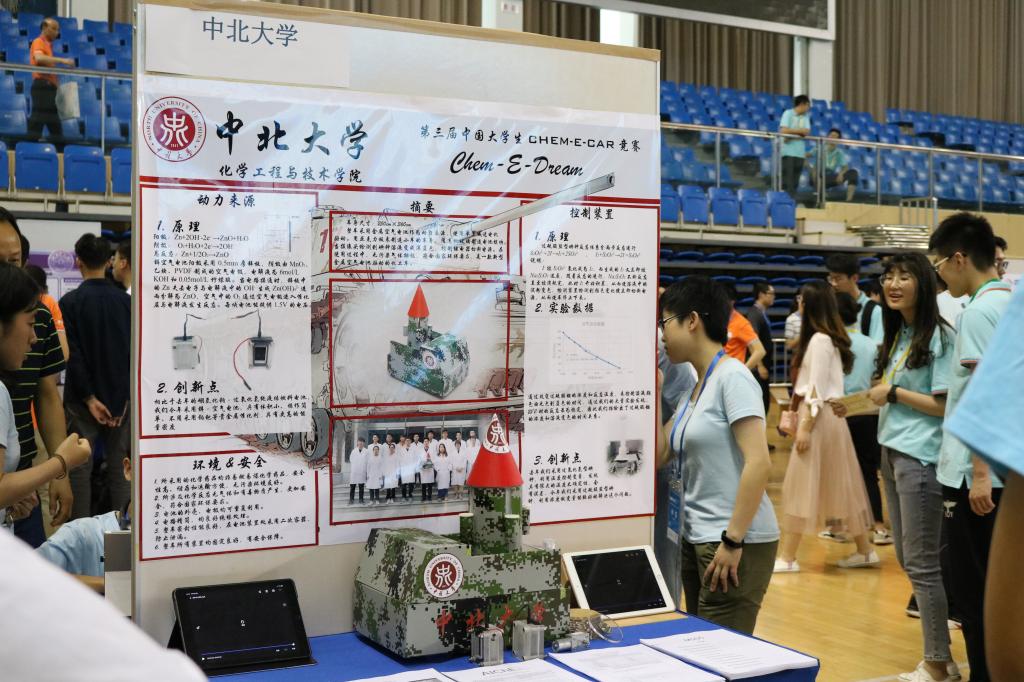 、北京化工大学、清华大学。竞赛为前五名颁发证书,并向前三名颁发奖杯。Chem-E-Car竞赛(Chem-E-Car Competition)是由美国化学工程师学会(American Institute of Chemical Engineers, AIChE)所发起开展的一项运用化学工程技能的国际性赛事,主要参赛对象为大学本科生,旨在提升化工专业大学生研究创新和学以致用的能力,培养化工专业创新型复合人才。该比赛要求参赛队伍自行设计并制定一个小车,以化学反应提供动力,并以化学反应进行精准控制。参加竞赛的前期要综合考虑能源、环境、安全等多种因素进行创新性设计和展示,竞赛现场需尽快适应环境、调整心态,并在提前一小时给定的负载重量和行驶距离要求下,进行精准的实验操作,使小车的性能达到最优(离终点线越近表明小车设计的越精准,性能越好)。
