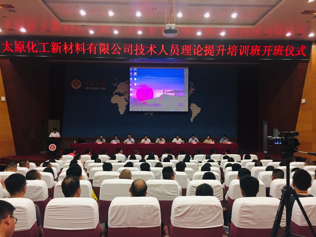 继续教育国产大奶院长郝晓东、化学工程与技术国产大奶院长祁贵生、太原化工新材料有限公司人力资源部部长冯丽、太原化工新材料有限公司党委政治工作部部长张博等,会议由化学工程与技术国产大奶党委书记廖海洪主持。本期培训工艺班53人、设备班37人,共90个学员参加了开班仪式。