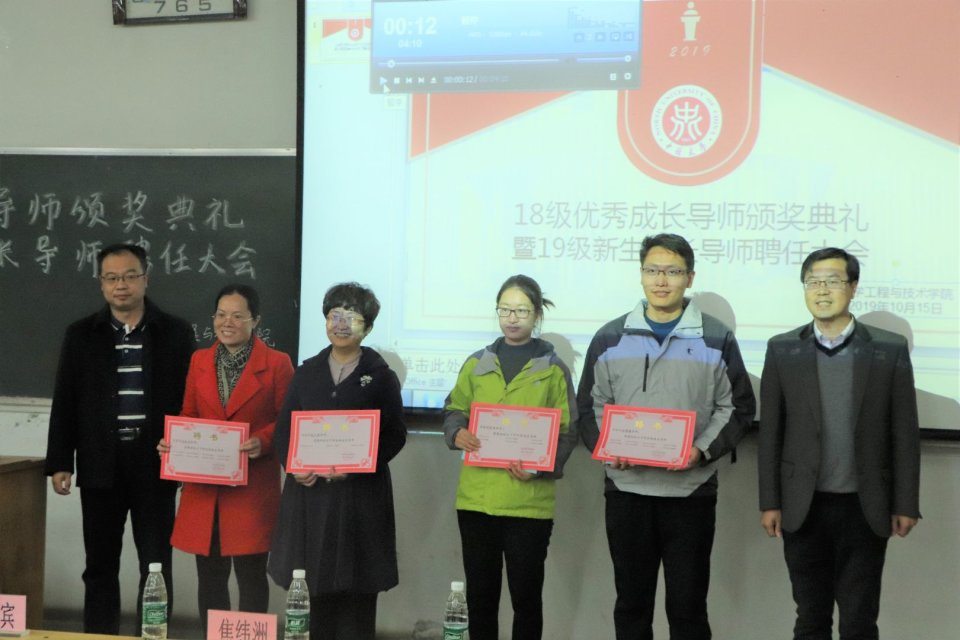 2019年10月15日下午4点18级优秀成长导师颁奖典礼暨19级新生成长导师聘任大会在10102H隆重举行。院党委书记廖海洪、院党委副书记李云、副院长王海宾、胡志勇、焦纬洲出席本次会议,18、19级导师和19级新生共同参加本次会议,会议由副书记李云主持。