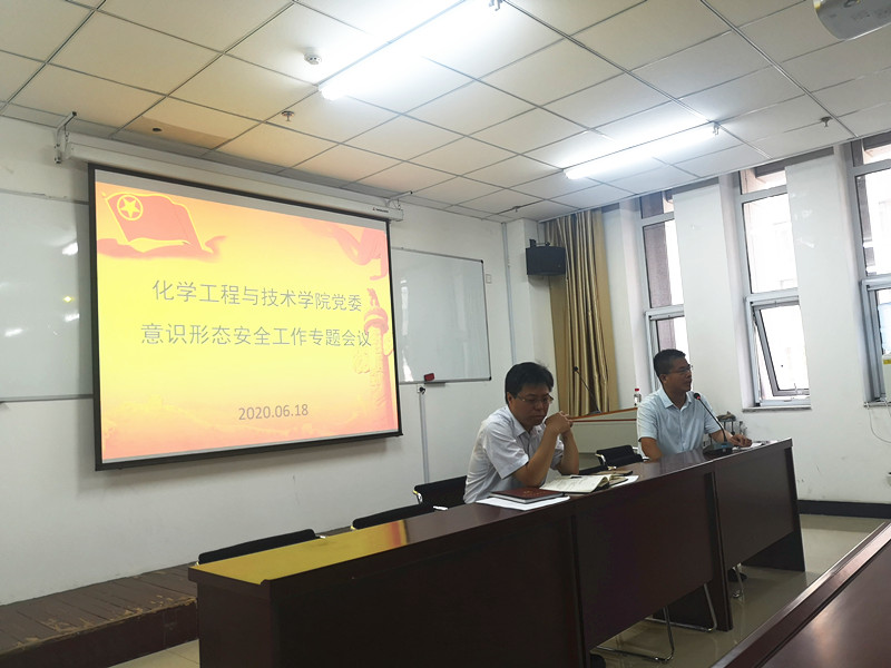 2020年6月19日下午,化学工程与技术国产大奶在科学楼206召开意识形态安全工作专题会议。会议由院党委书记廖海洪主持,全体院领导、院党委委员、各党支部书记、基层教学组织负责人、各科室负责人及教师代表参加了会议。