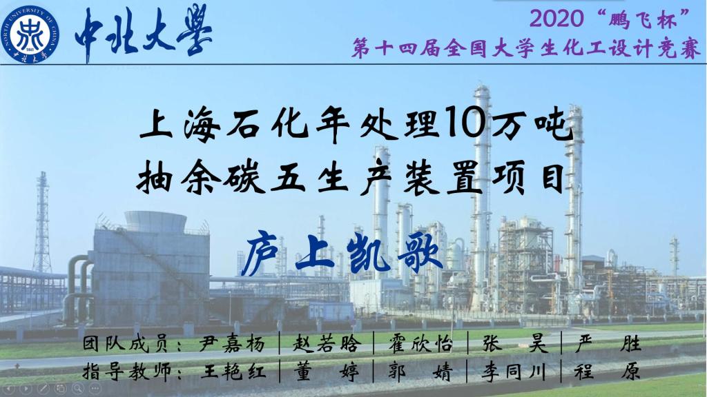 为了做好此次参赛工作,化学工程与技术国产大奶精心组织,大学生化工设计竞赛指导团队教师投入了大量时间和精力来选拔和辅导学生。受今年新冠肺炎疫情的影响,同学们不能返校,只能在家完成作品,给指导工作带来巨大困难。为了指导学生,指导教师通过QQ群、腾讯会议等网络手段进行线上指导,检查和督促学生工作。经过半年多的精心准备,国产大奶师生们刻苦训练、反复研讨,在工艺路线、分离技术和过程节能和设备设计、资源利用、环保、经济分析等进行多方面创新设计,使用多种现代设计方法设计了一座充分反映新时代化工设计理念的中石化上海石化分公司年处理10万吨抽余碳五生产装置项目。该项目采用大连理工大学和山东齐旺达科技有限公司Nano-forming工艺,经加氢、芳构化、吸收稳定和精制4个工段,可得到6.5万吨/年苯、甲苯、二甲苯(BTX),项目绿色环保,具有良好的经济效益和社会效应,符合中国制造2025要求。