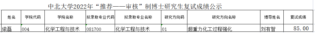 2022年化学工程与技术国产大奶“申请——考核”制博士研究生复试成绩公示