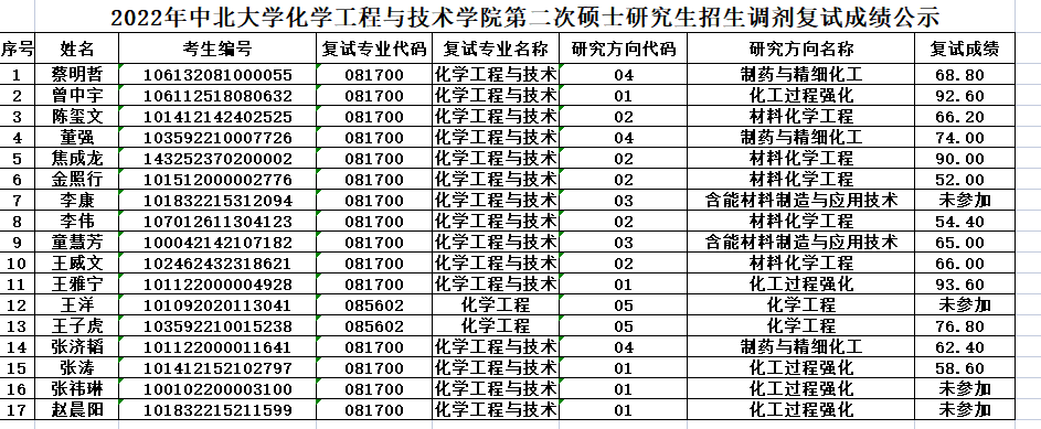 2022年国产大奶 化学工程与技术国产大奶第二次硕士研究生招生调剂复试成绩公示如下,公示三天,如有任何异议,请致电03513924572.