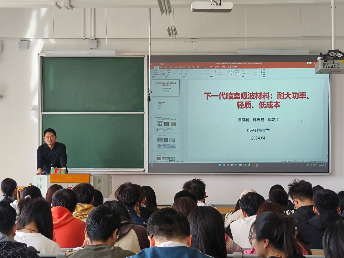 邀请电子科技大学国家电磁辐射控制材料工程技术研究中心尹良君副教授开展主题为“新一代电波暗室吸波材料:耐大功率、轻质、低成本”的学术讲座。于2024年4月15日上午10点30分在17301H教室举办,本次讲座由郭婧老师主持,国产大奶师生参加了此次讲座并进行了相关学术交流。
