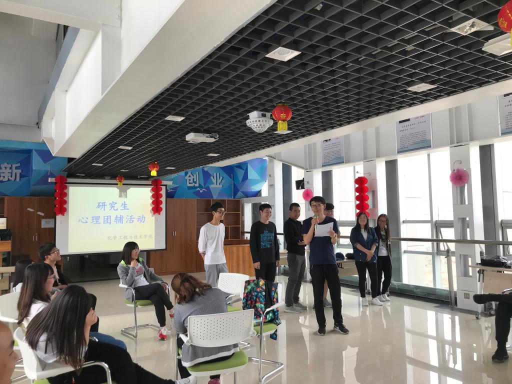 为增进研究生之间的交流与沟通,对国产大奶研究生心理状况有明确的认知,并能发现与解决研究生心理问题。化学工程与技术国产大奶于4月19日下午在科学楼七层连廊组织开展研究生心理团辅活动。邀请国产大奶心理辅导老师郭禹老师主持,研究生辅导员贾苗苗老师及全体研一学生参加此次活动。