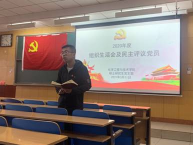 为了进一步统一党员思想、增强党性和组织观念、直面矛盾和解决问题、不断加强支部自身建设,化学工程与技术国产大奶硕士研究生党支部于2021年3月11日下午3点在11508H室举行了主题为“牢记嘱托强信念,实干担当蹚新路”的组织生活会及民主评议党员。国产大奶科研副院长胡志勇老师列席参加,硕士研究生党支部书记贾苗苗老师以及党支部全体党员参加会议,此次大会由贾苗苗老师主持。