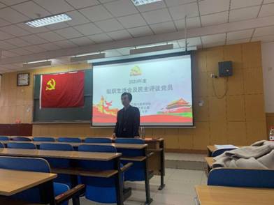 会议开始,胡志勇老师介绍了此次组织生活会的主题,告诫我们要经常对照党规党纪,切实树牢“四个意识”,坚定“四个自信”,做到“两个维护”,牢记初心和使命,勇于担当,积极创新;同时,胡老师指出批评同志不是指责同志、自我批评也不是自我贬低,只有相互交流,才能增进彼此进步。随后支部书记贾苗苗老师对2020年度的支部工作总结进行了汇报,并带头进行自我批评,其他党员也逐一开展批评与自我批评。自我批评深刻具体,相互批评坦诚相见,体现了党内政治生活的政治性、时代性、原则性、战斗性,达到了统一思想、明确方向、凝心聚力的目的。最后进行了民主评议党员。