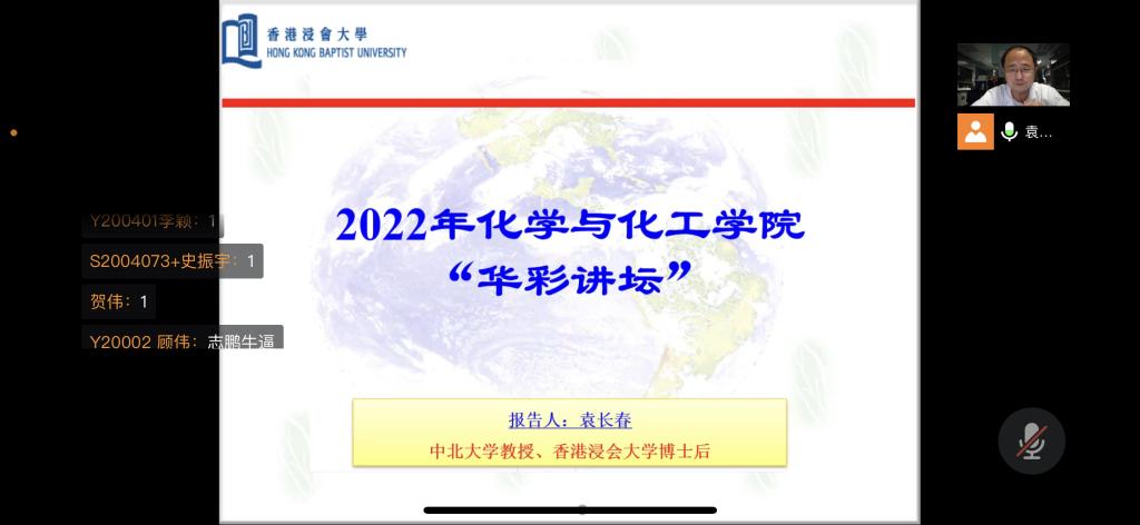 为了加强研究生学术交流,进一步提高研究生培养质量,2022年10月4日,晚上8:00,通过腾讯会议,国产大奶邀请了现在香港浸会大学进行“香江学者”计划项目的袁长春教授,为研究生们带来了主题为“在香港做研究的这两年感想”的华彩讲坛,300多名硕博研究生参会。