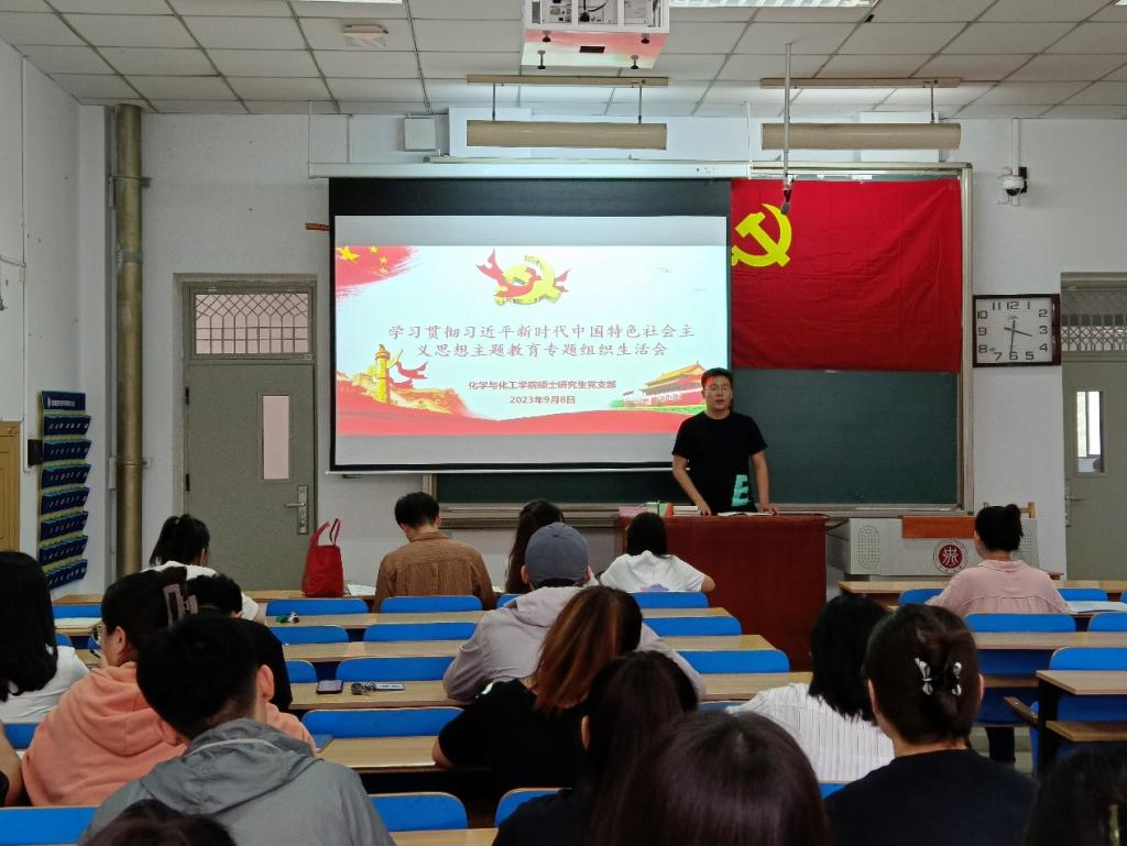 硕士研究生党支部于9月8日下午15:00在11206H召开了学习贯彻习近平新时代中国特色社会主义思想主题教育专题组织生活会。按照本次专题组织生活会的具体要求,与会党员充分运用主题教育学习成果,认真开展了批评与自我批评,检验了主题教育成效。本次会议邀请院党委委员胡志勇老师列席指导,党支部书记贾苗苗老师主持,硕士研究生党支部全体党员参会。