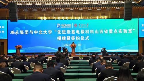 省市场监督管理局党组书记、局长鞠振,吕梁市人大常委会副主任、孝义市委书记刘世庆,吕梁市副市长任磊,副市长、市公安局局长郭红波,孝义市委副书记、市长郭清智出席活动。校党委书记沈兴全与鹏飞集团董事局主席兼总裁郑鹏共同为“先进炭基电极材料山西省重点实验室”揭牌,副校长刘俊与鹏飞集团总裁助理马小龙签订战略合作协议。